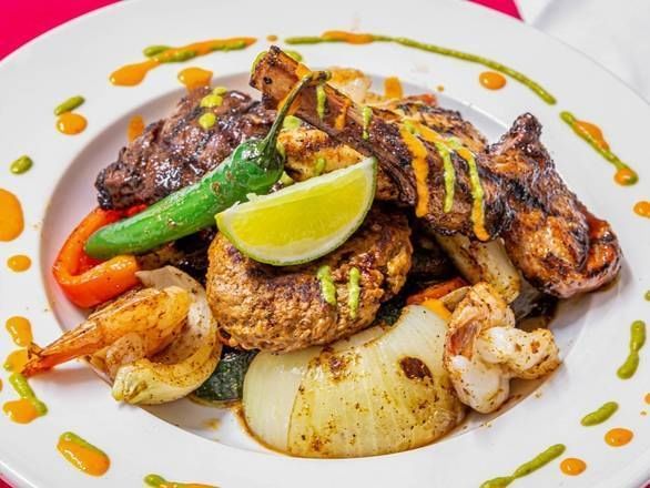 Black Angus skirt steak, shrimp chicken tender, chorizo, lollipop of lamb, sauteed vegetables, our chimichurri & guajillo chimi drizzle (sorry, no substitutions)