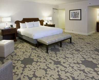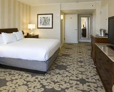 Standard room featuring flat-screen LCD TV with 18 HD channels (including HBO and ESPN) as well as LodgeNet pay-per-view movies. For your comfort, we offer The Bed by Hilton king bed, a Hilton-designed radio alarm clock with iPod/MP3 connection, coffeemaker, iron and ironing board, in-room safe, and hair dryer. Some rooms also offer a mini-refrigerator. For the business traveler, every room has a large desk with a speaker phone featuring voice mail. High-speed wireless internet is also available for a nominal fee.