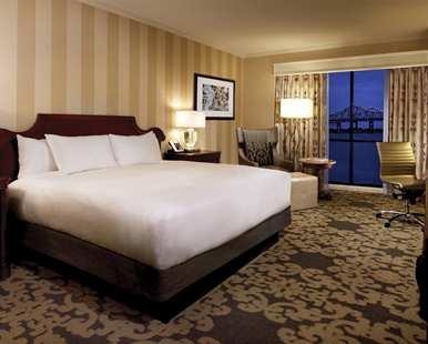 Delxue accommodations with Mississippi or New Orleans city view with 37" flat-screen LCD TVs with 18 HD channels as well as LodgeNet pay-per-view movies. For your comfort, we offer The Bed by Hilton, a Hilton-designed radio alarm clock with iPod/MP3 connection, coffeemaker, iron and ironing board, in-room safe, and hair dryer. Many of these rooms also offer a mini-refrigerator. For the business traveler, every room has a large desk with a speaker phone featuring voice mail. High-speed wireless internet is also available for a nominal fee.