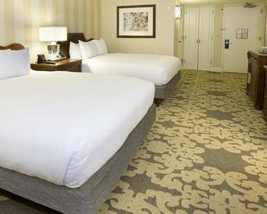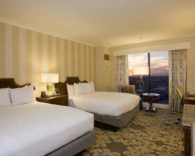 Standard rooms feature two queen-sized beds, flat-screen LCD TVs with 18 HD channels (including HBO and ESPN) as well as LodgeNet pay-per-view movies. For your comfort, we offer The Bed by Hilton, a Hilton-designed radio alarm clock with iPod/MP3 connection, coffeemaker, iron and ironing board, in-room safe, and hair dryer. Some rooms also offer a mini-refrigerator. For the business traveler, every room has a large desk with a speaker phone featuring voice mail. High-speed wireless internet is also available for a nominal fee.